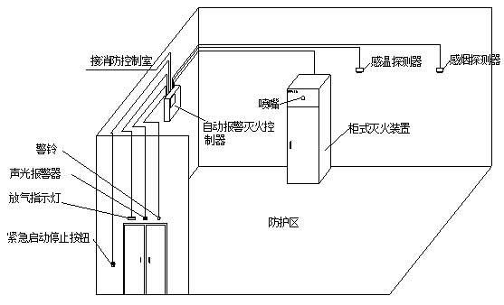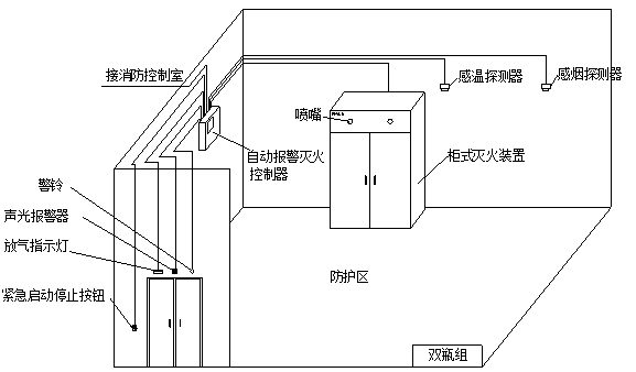4.3.6待消防部門驗收合格、使用單位人員培訓到位后,才可接通電磁驅動器的啟動線路,拔掉電磁驅動器保險銷,系統開始正式運行。