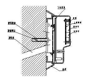 c. 將底座置于墻上,用配套的木螺釘組合從底座的安裝孔處穿出,固定在墻上孔內(nèi)的塑料脹管內(nèi)。